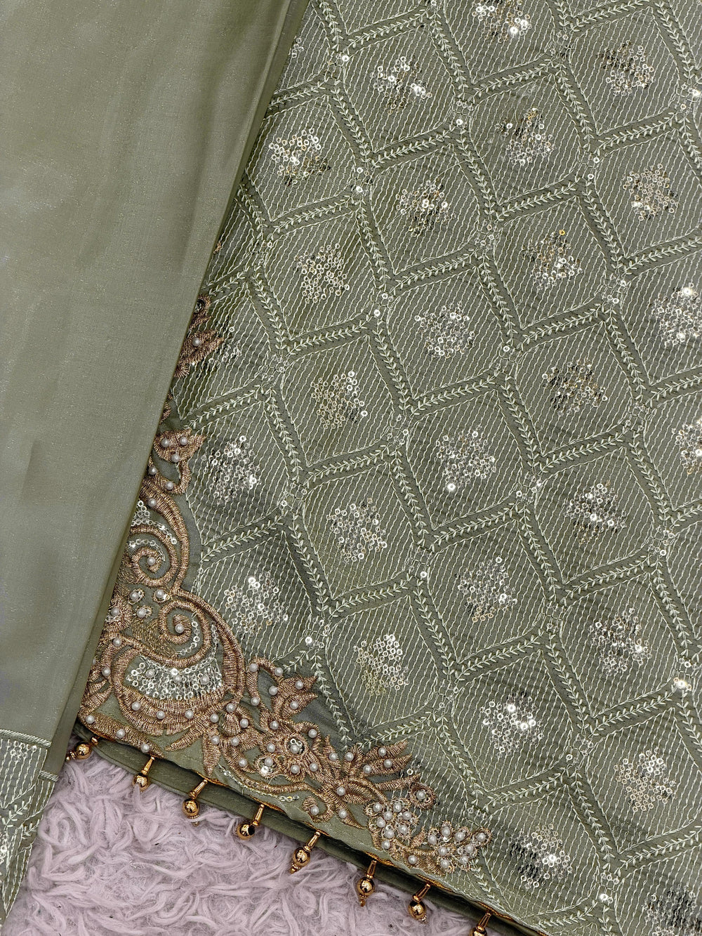 Top Fabric :Pure GMY SILK With Heavy Embroidery Sequence Work With Full Sleeve